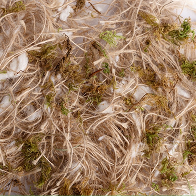 Il misto fibra Cocco – Juta – Cotone – Muschio è particolarmente consigliato per gli uccelli fringillidi, come i cardellini, i verdoni, i verzellini, i cardinalini e uccelli simili perchè riesce a simulare le fibre che questi uccelli usano in natura per la costruzione del nido.