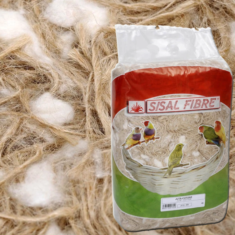 Il misto di fibra Juta e Cotone è forse uno dei materiali misti più apprezzati dai canarini per la realizzazione dell’imbottitura del nido, poichè questo misto unisce la morbidezza deli fiocchi di cotone alla corposità degli sfilacci di juta.