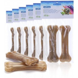 Queste ossa di pelle bovina compresse soddisfano il bisogno del tuo cane di masticare mentre puliscono il tartaro dai loro denti.