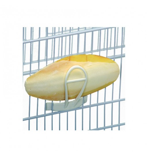 Portaseppia senza posatoio in plastica bianca, realizzato da 2GR, va inserito internamente alla gabbia e fissato alle sbarre grazie ad appositi ganci che vanno ad incastro tra le sbarre.