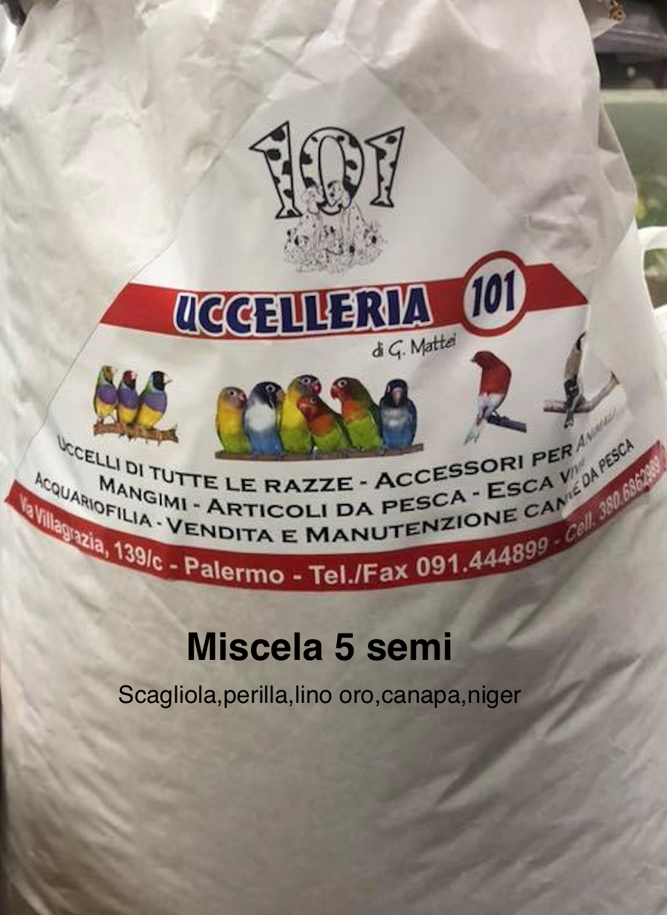 Semi: Scagliola,niger,canapa,lino oro e perilla bianca.